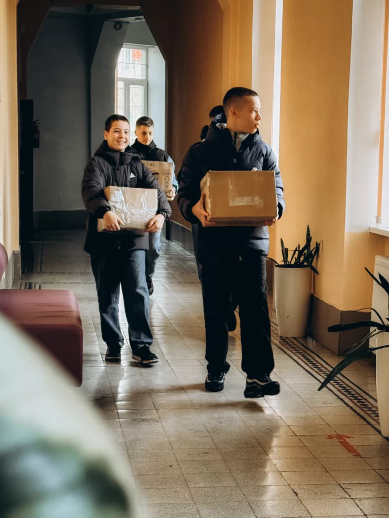 Це той самий підрозділ, якому навесні наш ліцей уже надсилав коробки з великодніми смаколиками. І сьогодні цей зв’язок не переривається — бо підтримка, народжена щирістю, не має відстаней. У кожній переданій речі — турбота, у кожному пакунку — віра, у кожному слові — вдячність тим, хто щодня тримає небо над нами.
