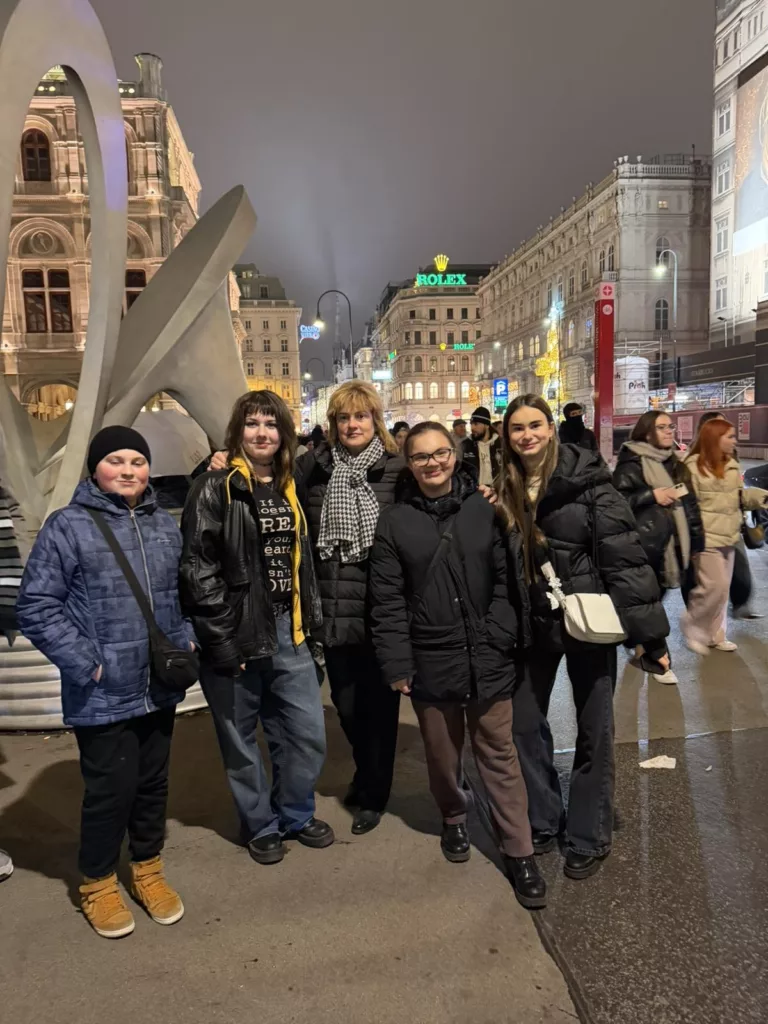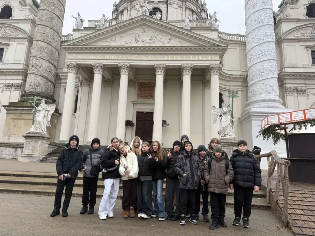 Із 12 по 14 грудня учні 2(6)-Д, 3(7)-Г, 4(8)-А та 4(8)-Б класів разом із класними керівниками відвідали Відень і Будапешт. Під час оглядової екскурсії столицею Австрії школярі побачили її величну архітектуру — собор Святого Стефана, палац Хофбург, Ратушу та Віденську оперу. Захопливі розповіді гіда допомогли учням глибше пізнати історію міста й відчути атмосферу європейської культурної столиці.